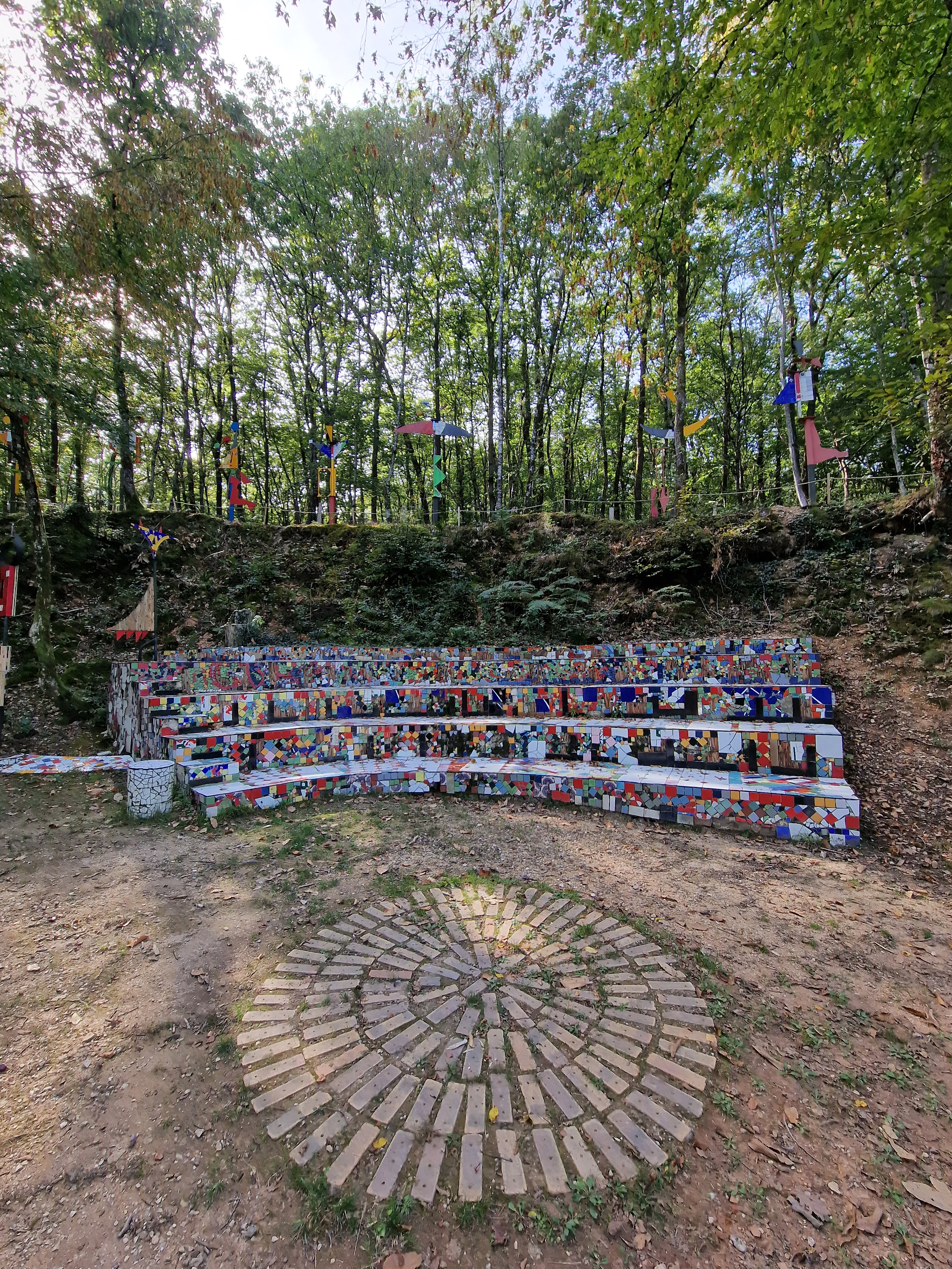 Hélas site encore fermé lors de mon passage mais patience l’ouverture est prévue pour début juillet 2022, après discussion avec les propriétaires qui s’activent pour pouvoir ouvrir ce lieu insolite au public. Un univers coloré et un bel exemple d’art brut dans la lignée de la maison Picassiette ou du palais du facteur Cheval. A défaut le sentier communal partant un peu plus haut sur la droite permet d’avoir un aperçu de la cathédrale et donner l’envie d’y revenir.