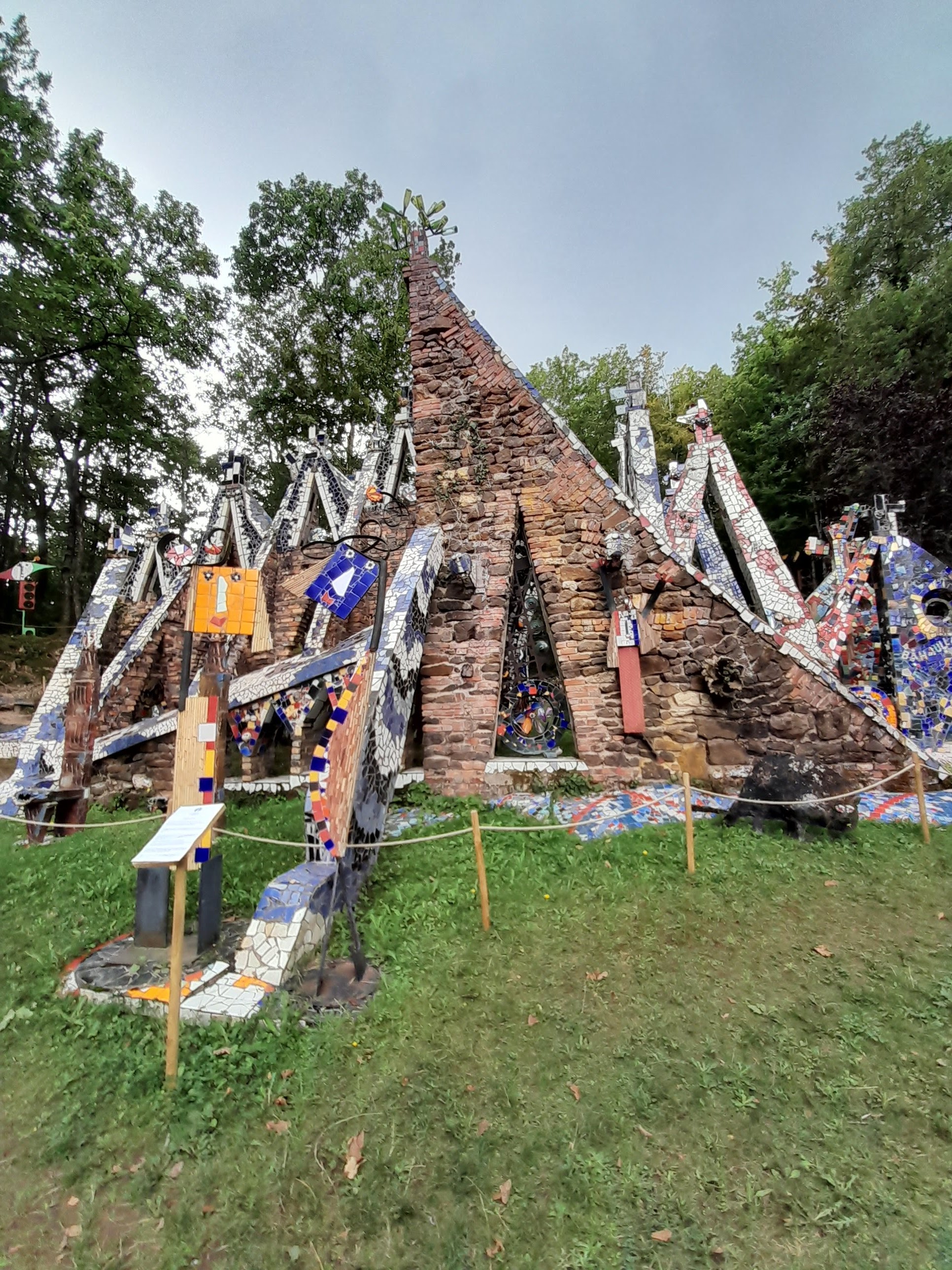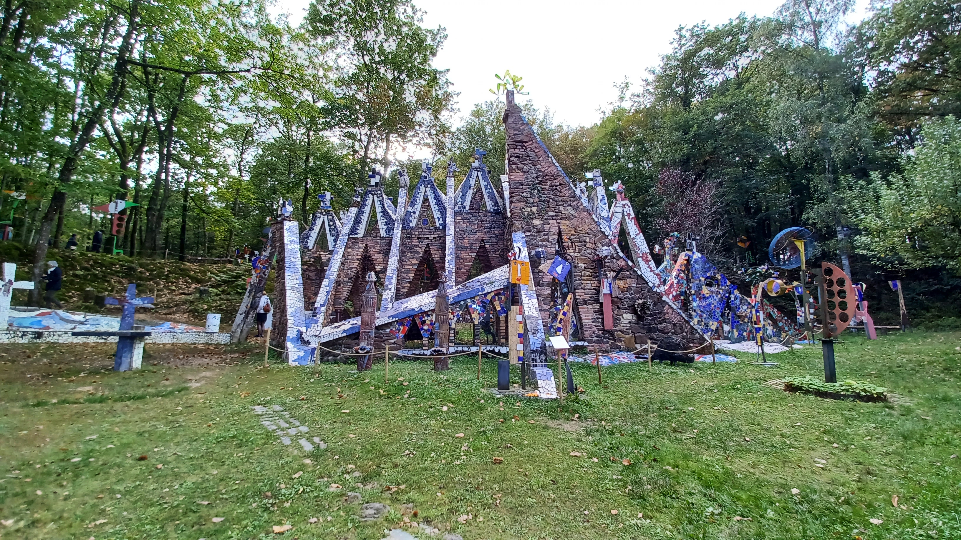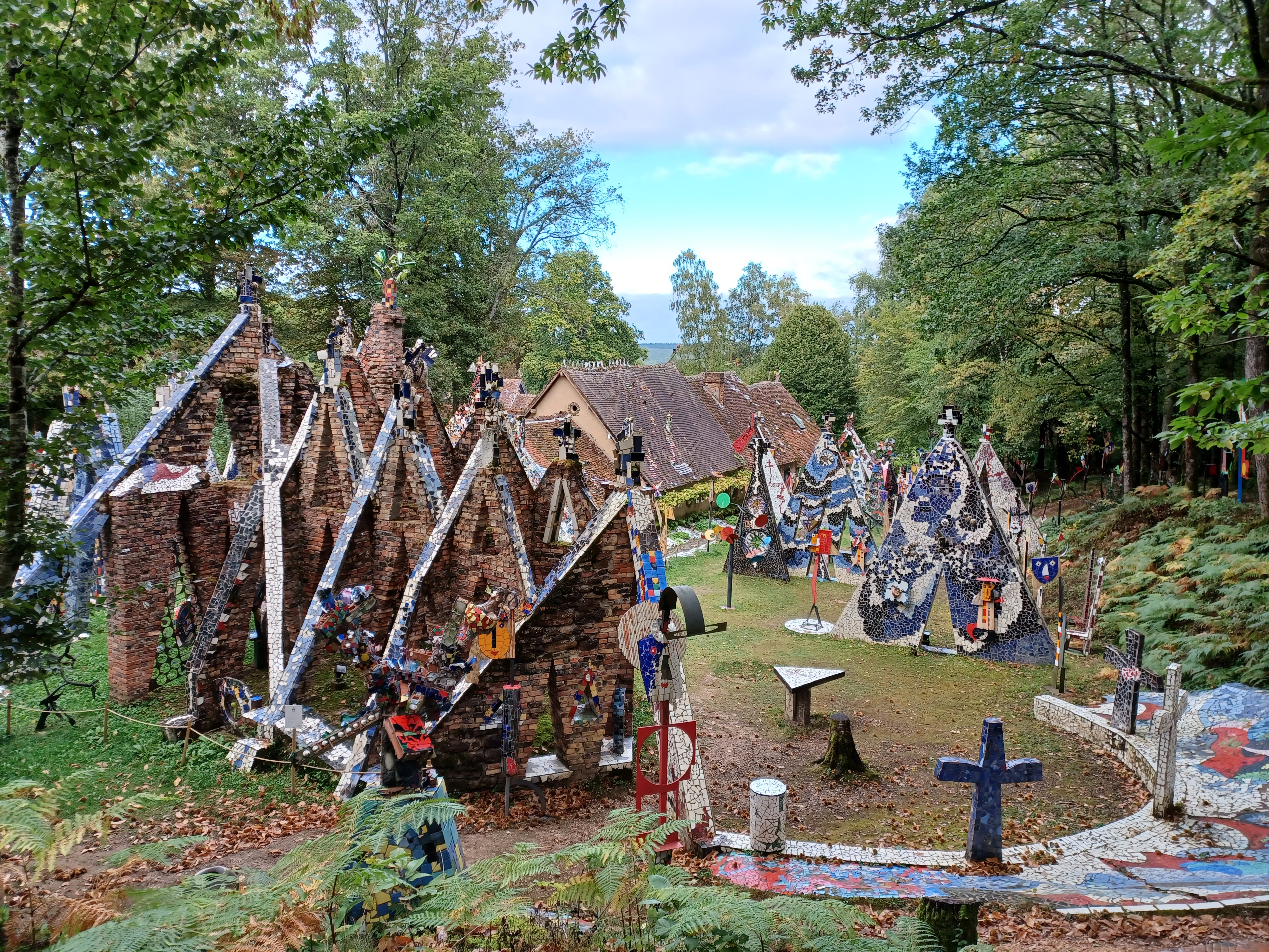 Lieu surprenant perdu dans les bois. Une architecture comme nulle part ailleurs. On espère que ce lieu loufoque pourra survivre aux années et être protégé. Compter entre 30min et 1h pour se plonger dans l'originalité du lieu si vous prenez le temps de regarder chaque détail de ce qui a été construit des mains de l'artiste. De sa maison à la cathédrale en passant par toutes les sculptures et les petits aménagements colorés.