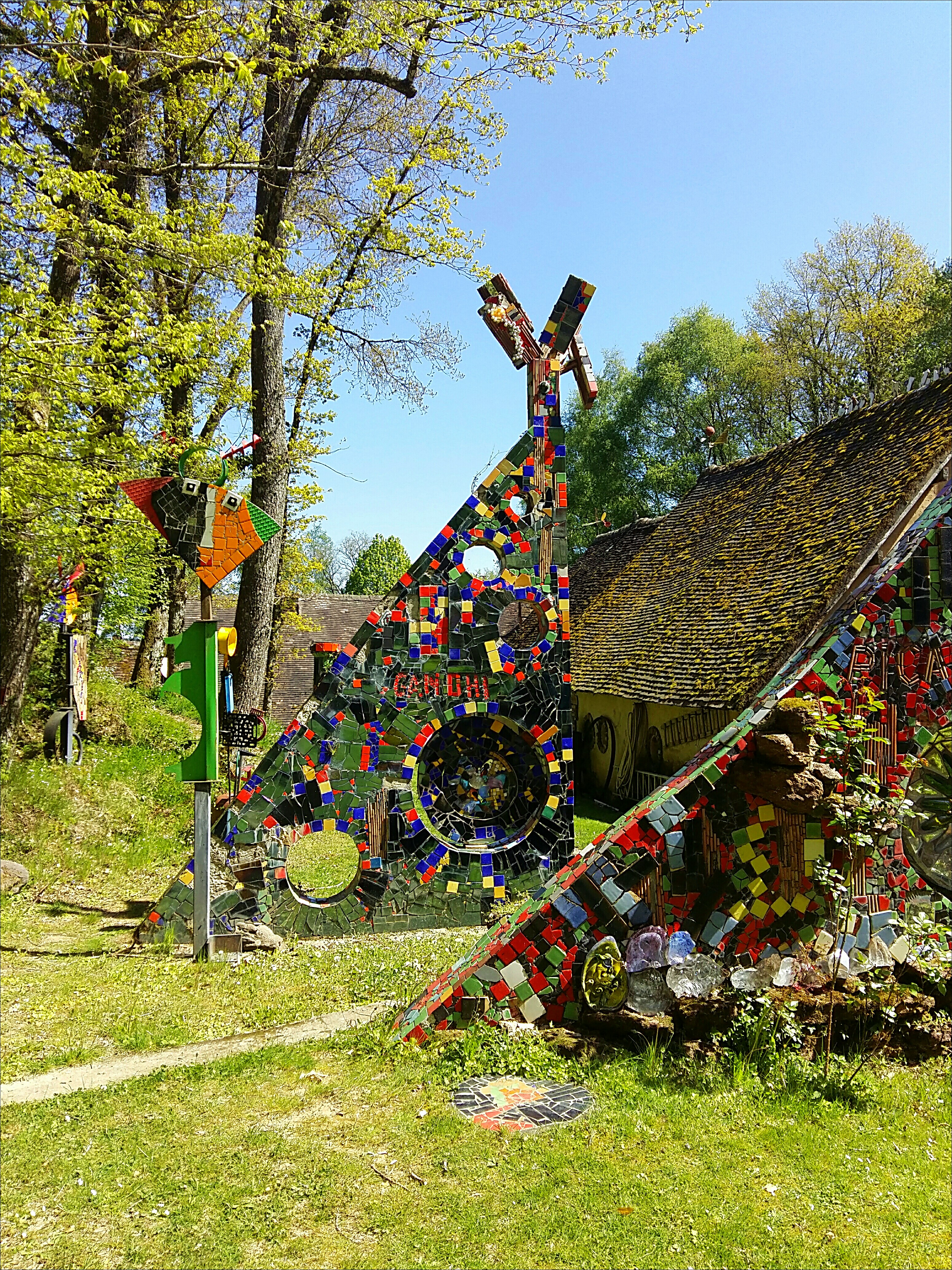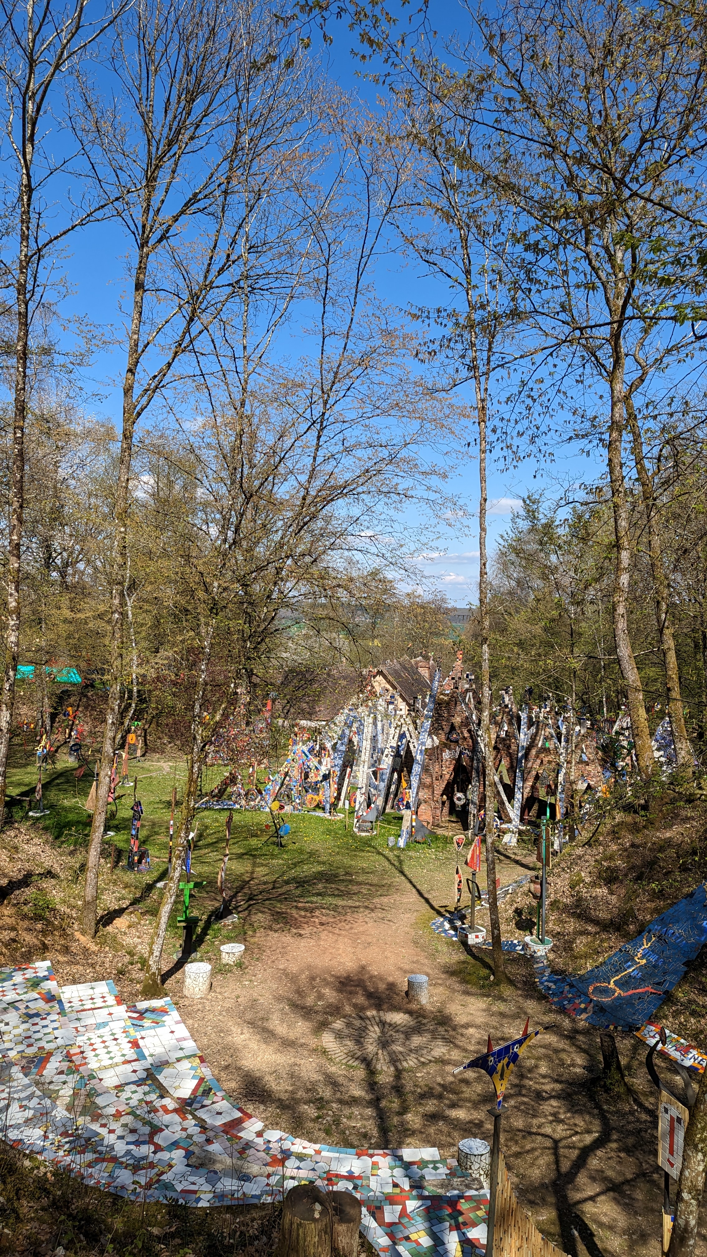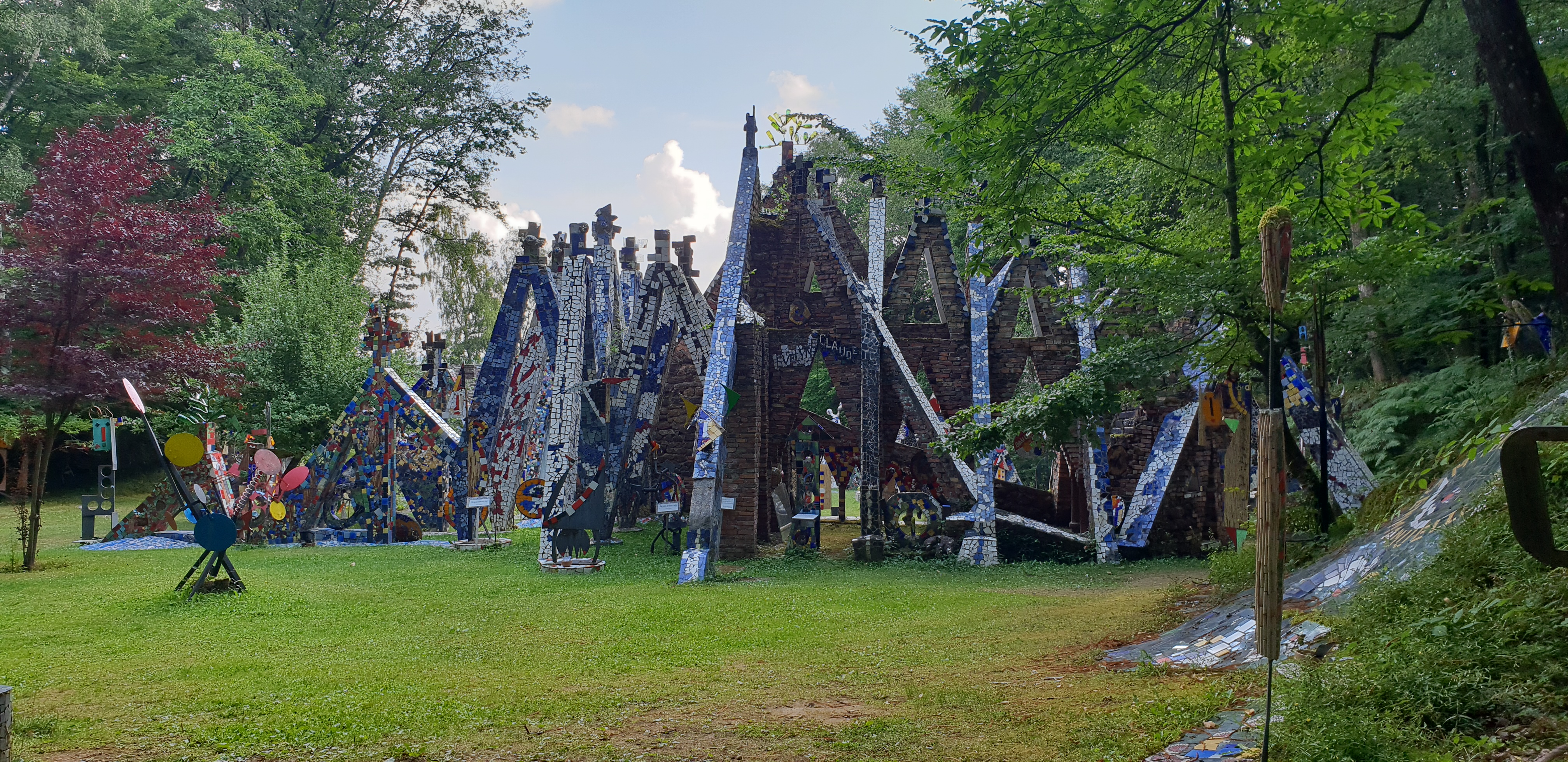 Lieu surprenant perdu dans les bois. Une architecture comme nulle part ailleurs. On espère que ce lieu loufoque pourra survivre aux années et être protégé. Compter entre 30min et 1h pour se plonger dans l'originalité du lieu si vous prenez le temps de regarder chaque détail de ce qui a été construit des mains de l'artiste. De sa maison à la cathédrale en passant par toutes les sculptures et les petits aménagements colorés.